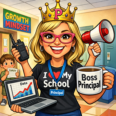 - Include a giant coffee mug that reads “Boss Principal”