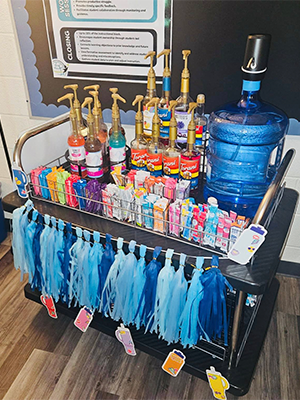 Led by copresidents Whitney Jones Marler and Kayla Bomhard, the PTO hopped on the treat trolley train in 2021 to bring a little comfort and joy to teachers during the pandemic, and the idea just stuck. (It’s safe to say teachers like their snacks!) Now, each month’s cart features a different theme and smorgasbord of treats. PTO goals, right?