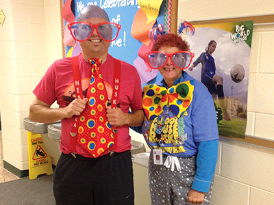 The principal and vice principal at Rosa Parks Elementary in Woodbridge, Va., promised to dress in full clown regalia if students managed to get a donation from every state during the school’s annual fun run. The goal was met and the principals kept their promise, to the delight of students.
