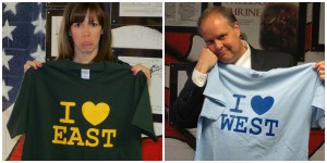 Amy Gromada, West Middle's principal, (left) will be wearing the East Middle T-shirt next week!