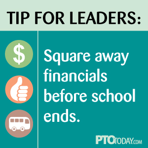 I know you’re tired and looking forward to a break, but you’ll be really happy (and your group and school will be better off for sure) if you tackle these three end-of-year steps:1. Have your books reviewed. This should be a habit. You don’t have to use an accountant, and your treasurer shouldn't feel threatened by it. It's an impersonal, automatic process that should be part of your group's standard operating procedure. It's a review of checks and account balances -- a double-check of monthly statements -- to make sure balances on paper match with those reported. A quick look for red flags (like significant cash withdrawals or checks made out to cash) is also a good process. Here’s a great primer on checks and balances and handling cash.