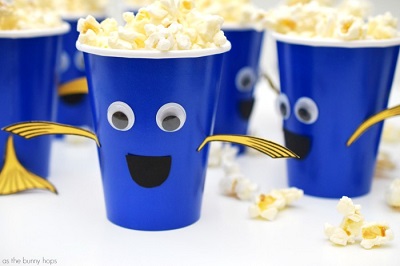 12. Attach googly eyes to blue cups and make the popcorn bar unforgettable.