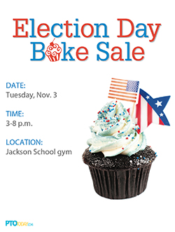 Election Day bake sales have become popular at schools that serve as polling sites, allowing people to buy cookies or cupcakes after casting their votes. There’s still time to plan a bake sale at your school. Get started fast by customizing our bake sale flyer below.