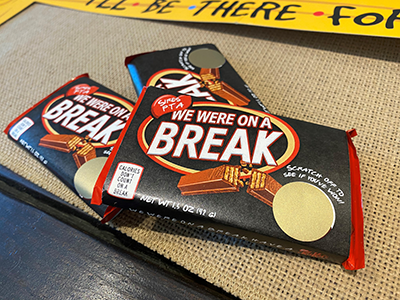 13. “We were on a break” Friends-theme Kit Kat candy bar wrapper