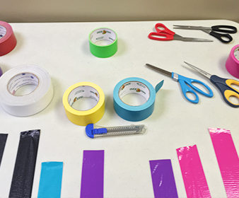 Buy more duct tape than you think you’ll need. Initially, we thought we’d need just a few rolls. But we ended up purchasing three large duct tape rolls and six smaller rolls of neon colors (to add pizazz). It’s better to have extra on hand. One reason: Duct tape is very sticky and a strip of tape can easily get knotted up, sticking to itself and becoming unusable. We lost several pieces that way.