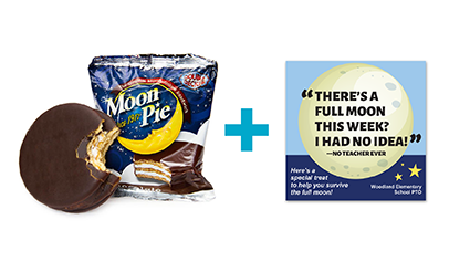 The next full moon is Oct. 17—pair our fun printable with moon pies for a spooky teacher treat!