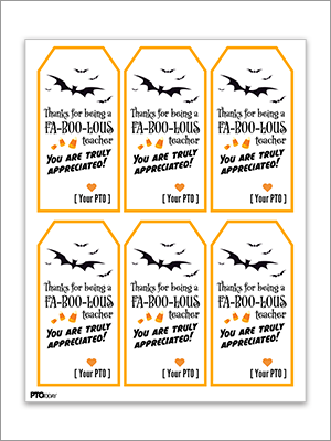 Package up candy and treats for teachers and leave a "fa-boo-lous" surprise in their mailbox! Or, deliver on a "all treats, no tricks" Halloween-themed teacher treat trolley. Get more fall teacher appreciation ideas