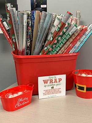 • Time to "Wrap Up" Another Year wrapping paper station sign