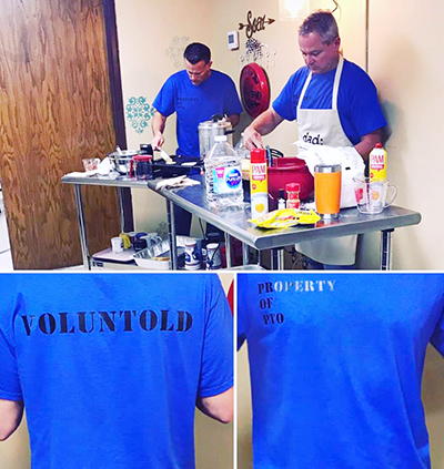 These good-sport dads were outfitted with shirts that read “Property of PTO” on the front and “Voluntold” on the back.