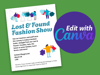Choose the right timing for your lost and found fashion show. Schedule it just before a PTO meeting or family event to boost parent turnout and engagement. Or hold it at the end of the school day as a special assembly so students can watch—and hopefully recognize their missing items.