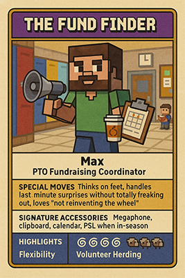 Name + Role (Subheading): Max, PTO Fundraising Coordinator