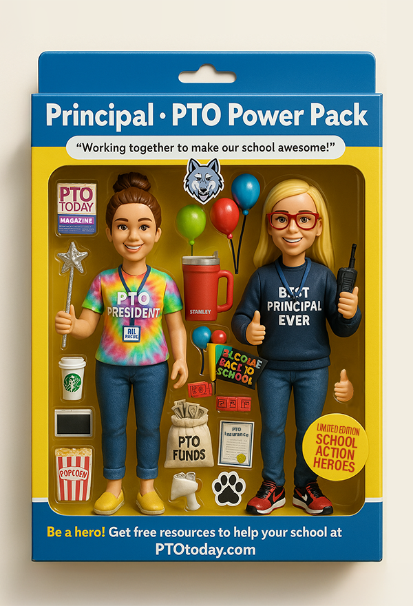 If you haven't come across a PTO action figure set on social media yet, it's just a matter of time! PTOs are getting creative and using these fun AI-generated images of PTO members to get parents interested in volunteering and joining the PTO. But, that got us thinking...how can we use ChatGPT to show the importance of a positive relationship between the PTO and the principal? So, we did a thing and made it happen—introducing the latest action figure set in our Limited Edition School Action Heroes series, the "School Principal PTO Power Pack"! You can create your own to share with your PTO (trust us...they'll love it - and appreciate your support!).