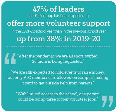 47% of leaders feel their group has been expected to offer more volunteer support in the 2021-22 school year than in the previous school year up from 38% in 2019-20