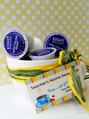 Teachers select the coffee and treats they’d like, then hang the tag on their classroom doors for the PTO to deliver.
