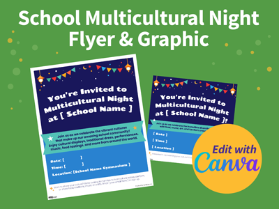 A school multicultural night is a great way to bring families together to learn about and celebrate the diverse cultures that make up your community. Plan this fun school event using ideas from Anaverde Hills PTSA and our free school multicultural night flyer and social media graphic.