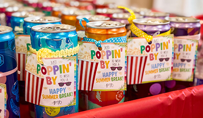 Fill small beach pails or mini insulated totes with summer-ready items, like lip balm, handheld fans, sunglasses, lemonade or Liquid IV hydration packets, bug spray or bug bands, Sun Chips, stress balls, facial sheet masks, magnetic bookmarks, cooling towels, and under eye treatment patches. Or, set up items for teachers and staff to make their own summer survival kits.