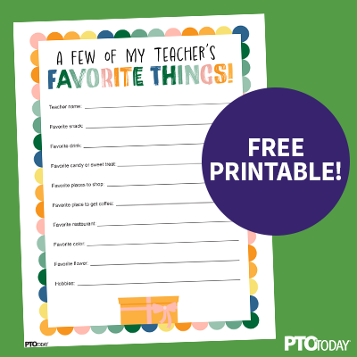Get to know your teachers with our free "teacher's favorite things" printable—a great handout for your PTO to share with parents at Meet the Teacher Night and open house.