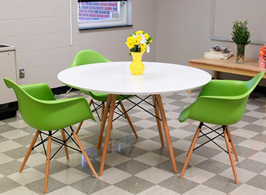 Before you come up with big plans to make over your school’s lounge, ask teachers what they’d like. Don’t fill the space with couches if it means eliminating the tables where they routinely grade assignments. Run your ideas past the principal and the PTO teacher liaison (if you have one) to make sure the changes make sense for the teachers.