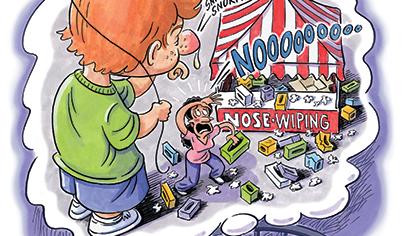 2. The annual school health and fitness fair has been renamed Booger Fest 2012. You’ve been assigned to the nose-wiping booth, but there are no tissues anywhere.