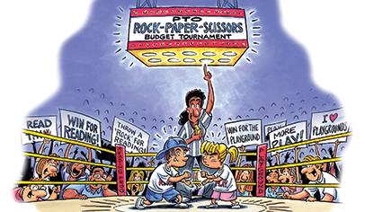 2. Balancing the PTO budget: Imagine solving your group’s quandary of whether to purchase that new reading program or the new playground over a friendly game of Rock-Paper-Scissors.