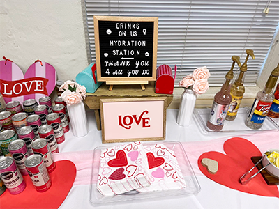 We love how Pearl Harbor Kai PTSO in Honolulu, Hawaii, set up a love-themed "Drinks On Us" hydration station for their teachers for Valentine's Day!