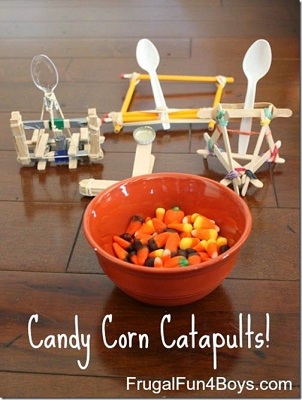 2. Donate all that leftover candy corn in the name of science. See how far it flies with this fun catapult activity.
